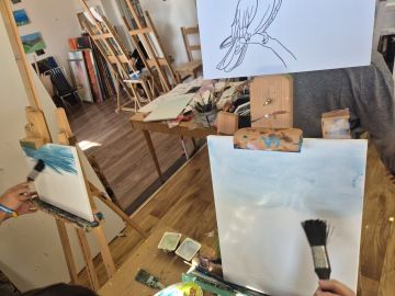 Někdo se zaměřil na detailní prokreslení peří, jiný zachytil dynamiku letu a další zase portrétoval papouška s jeho charakteristickým výrazem. Ateliér se tak na chvíli proměnil v exotickou ptačí říši, kde každý obraz vyprávěl svůj vlastní barevný příběh.